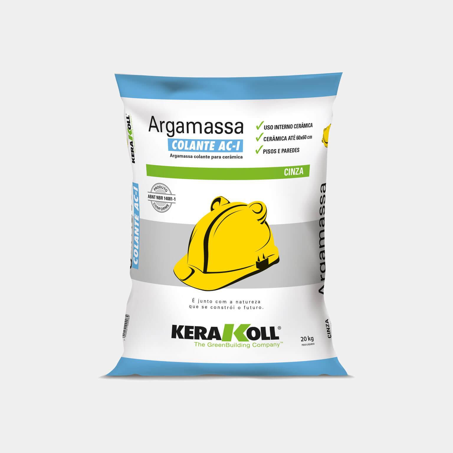 Argamassa Colante AC-I, é indicada para o assentamento de placas cerâmicas até 60x60 cm em ambiente interno, desde que a base